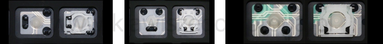 - W większości klawiatur wyglądających identycznie z zewnątrz stosowane były różne typy mocowań pod klawiszami.