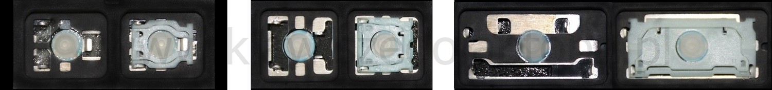 *Zdarza się, że w poszczególnych modelach klawiatury stosuje się więcej typów mocowań niż te trzy pokazane na zdjęciach; niektóre klawisze mają też metalowe zawiasy.