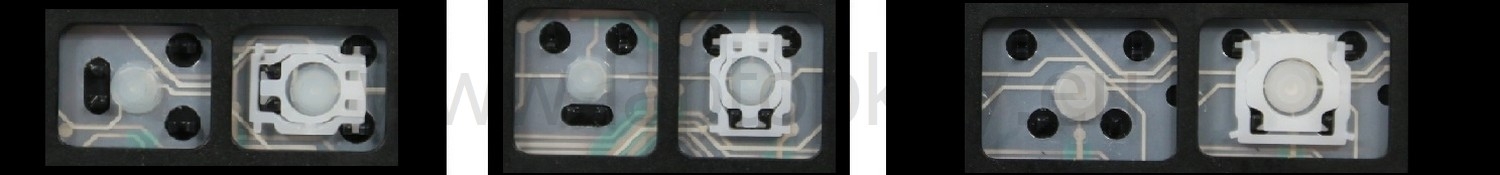 - Aby wybrać właściwy model, porównaj zdjęcie pustego miejsca na swojej klawiaturze ze zdjęciami poniżej, ewentualnie zdejmij klawisz „A” - pod nim zawsze jest zaczep średni.