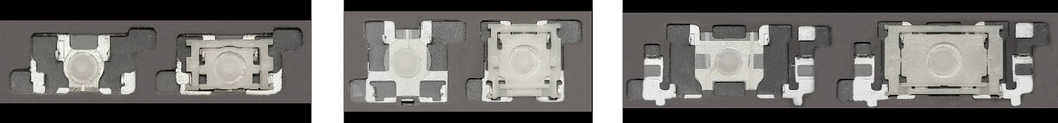 *Zdarza się, że w poszczególnych modelach klawiatury stosuje się więcej typów mocowań niż te trzy pokazane na zdjęciach; niektóre klawisze mają też metalowe zawiasy.