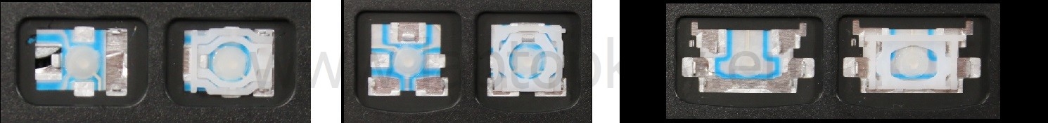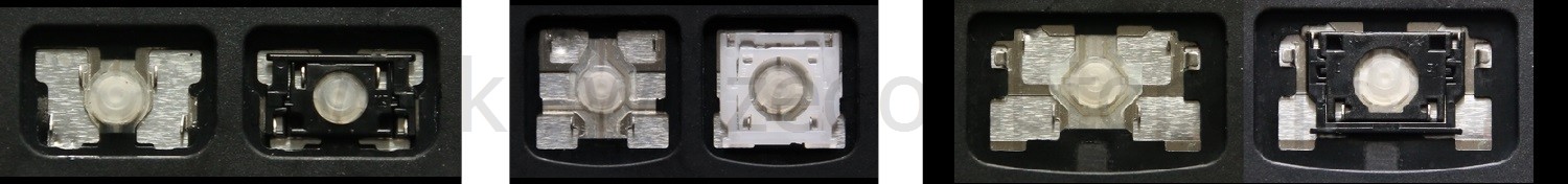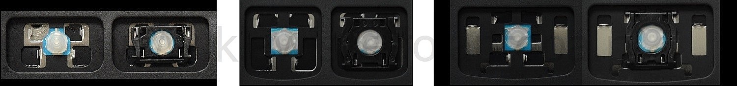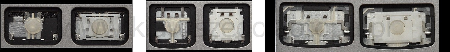 *Zdarza się, że w poszczególnych modelach klawiatury stosuje się więcej typów mocowań niż te trzy pokazane na zdjęciach; niektóre klawisze mają też metalowe zawiasy.