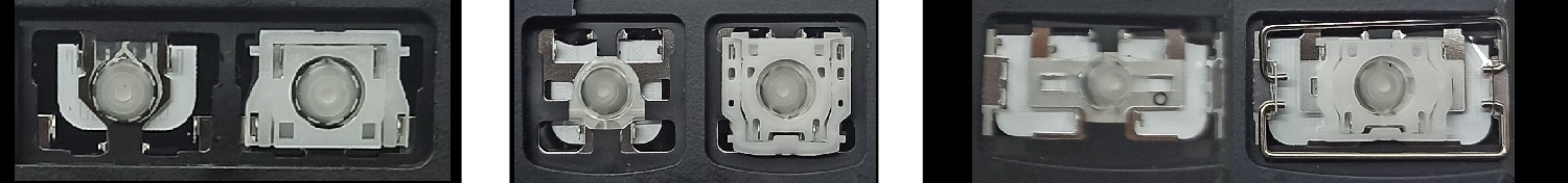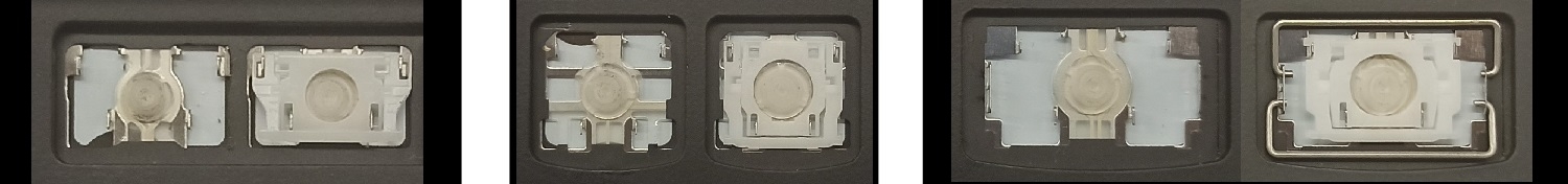 *Zdarza się, że w poszczególnych modelach klawiatury stosuje się więcej typów mocowań niż te trzy pokazane na zdjęciach; niektóre klawisze mają też metalowe zawiasy.