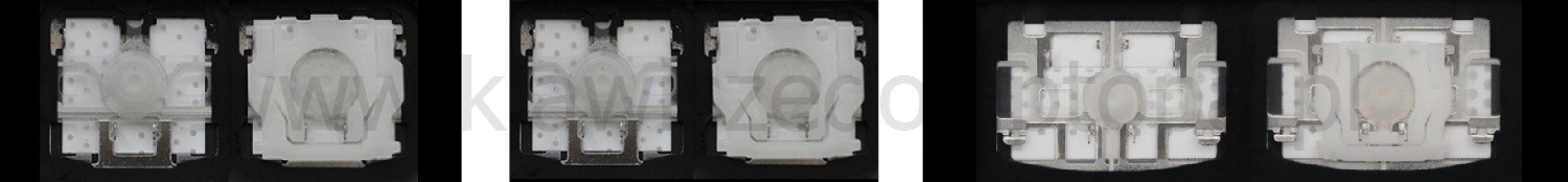*Zdarza się, że w poszczególnych modelach klawiatury stosuje się więcej typów mocowań niż te trzy pokazane na zdjęciach; niektóre klawisze mają też metalowe zawiasy.