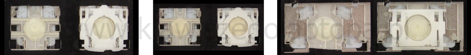- W większości klawiatur wyglądających identycznie z zewnątrz stosowane były różne typy mocowań pod klawiszami.