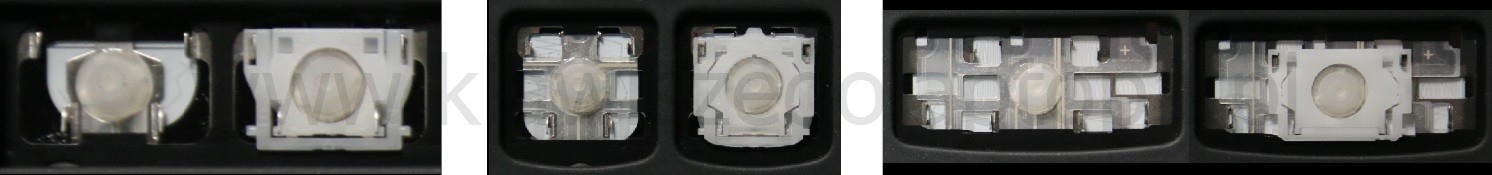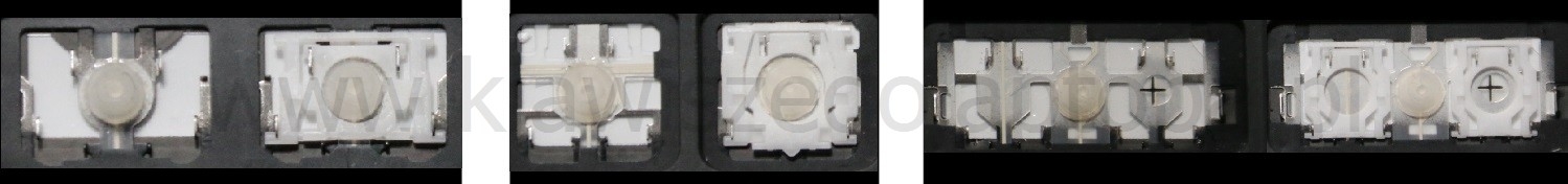 *Zdarza się, że w poszczególnych modelach klawiatury stosuje się więcej typów mocowań niż te trzy pokazane na zdjęciach; niektóre klawisze mają też metalowe zawiasy.
