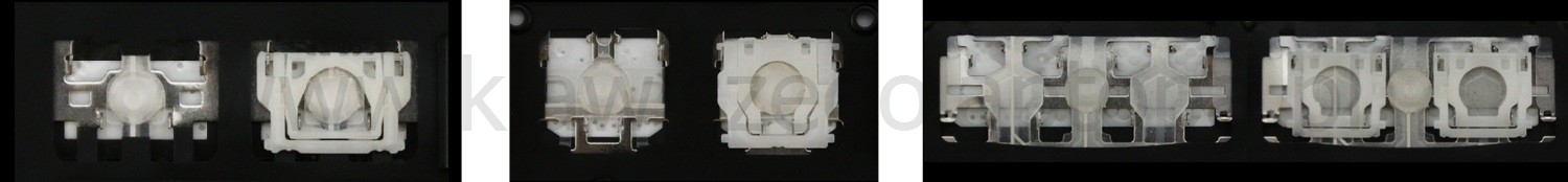 *Zdarza się, że w poszczególnych modelach klawiatury stosuje się więcej typów mocowań niż te trzy pokazane na zdjęciach; niektóre klawisze mają też metalowe zawiasy.