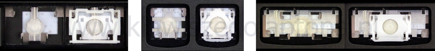 - W większości klawiatur wyglądających identycznie z zewnątrz stosowane były różne typy mocowań pod klawiszami.
