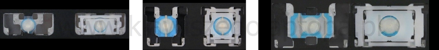 - W większości klawiatur wyglądających identycznie z zewnątrz stosowane były różne typy mocowań pod klawiszami.