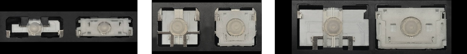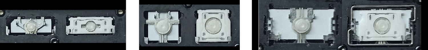 - W większości klawiatur wyglądających identycznie z zewnątrz stosowane były różne typy mocowań pod klawiszami.