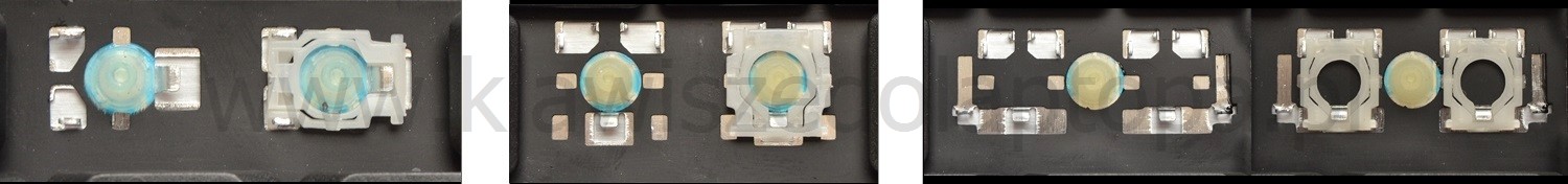 *Zdarza się, że w poszczególnych modelach klawiatury stosuje się więcej typów mocowań niż te trzy pokazane na zdjęciach; niektóre klawisze mają też metalowe zawiasy.