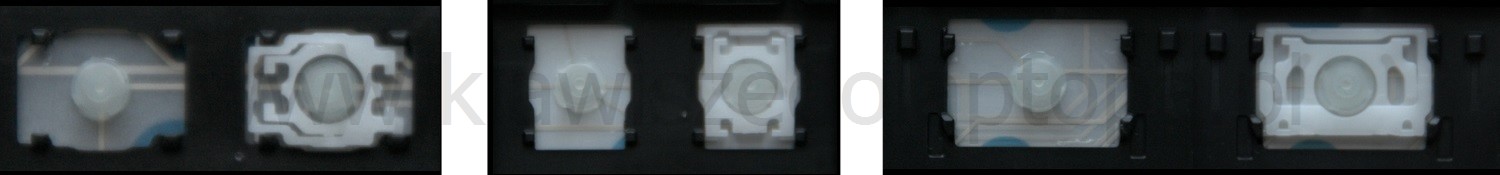 - W większości klawiatur wyglądających identycznie z zewnątrz stosowane były różne typy mocowań pod klawiszami.