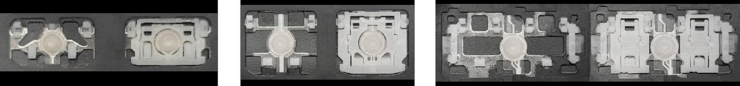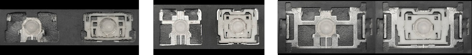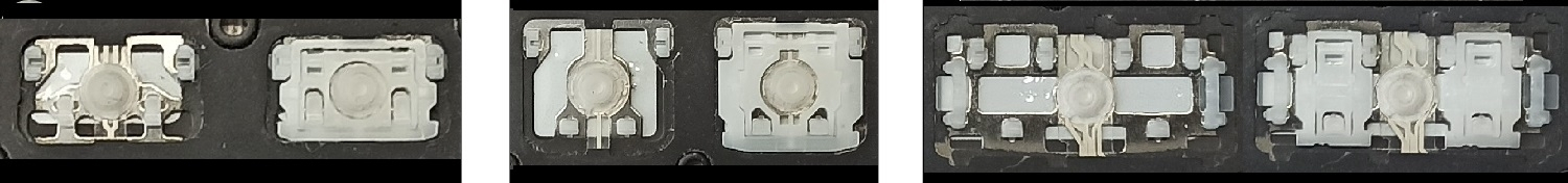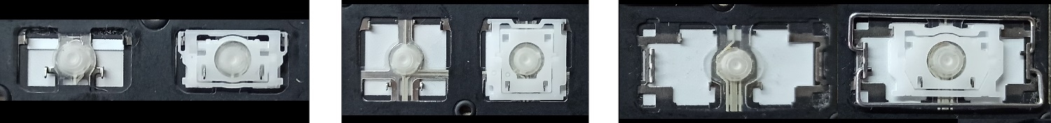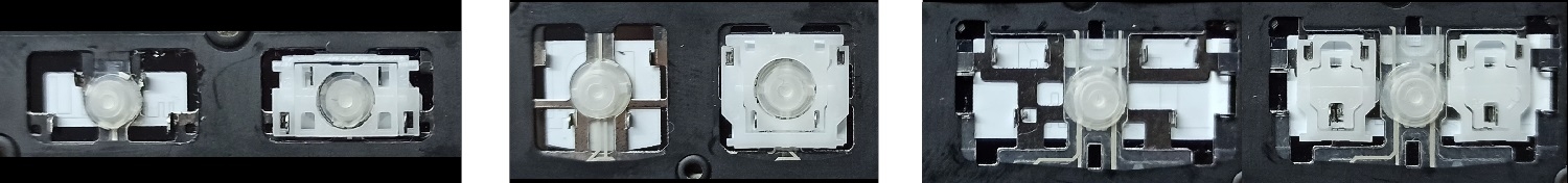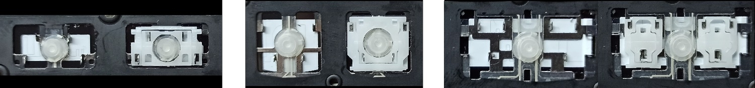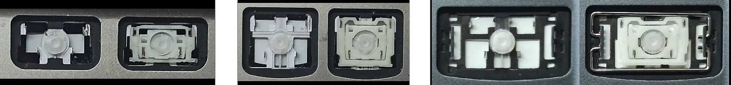 *Zdarza się, że w poszczególnych modelach klawiatury stosuje się więcej typów mocowań niż te trzy pokazane na zdjęciach; niektóre klawisze mają też metalowe zawiasy.