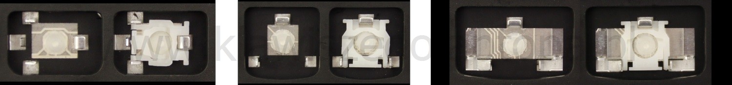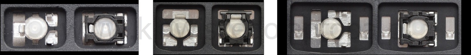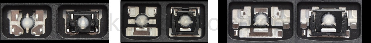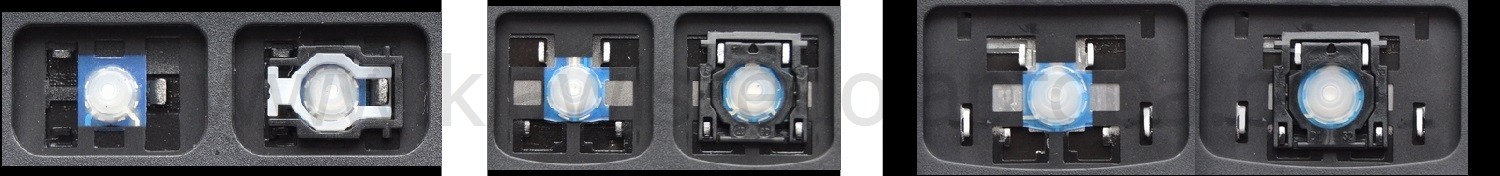 *Zdarza się, że w poszczególnych modelach klawiatury stosuje się więcej typów mocowań niż te trzy pokazane na zdjęciach; niektóre klawisze mają też metalowe zawiasy.