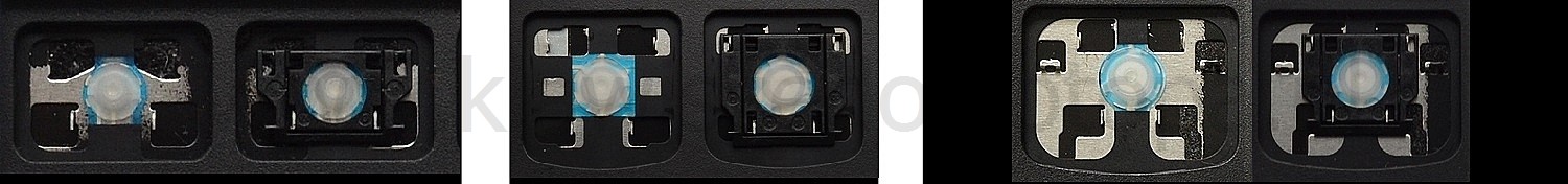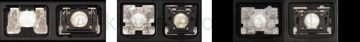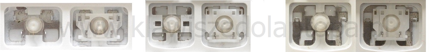 *Zdarza się, że w poszczególnych modelach klawiatury stosuje się więcej typów mocowań niż te trzy pokazane na zdjęciach; niektóre klawisze mają też metalowe zawiasy.