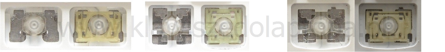 - W większości klawiatur wyglądających identycznie z zewnątrz stosowane były różne typy mocowań pod klawiszami.