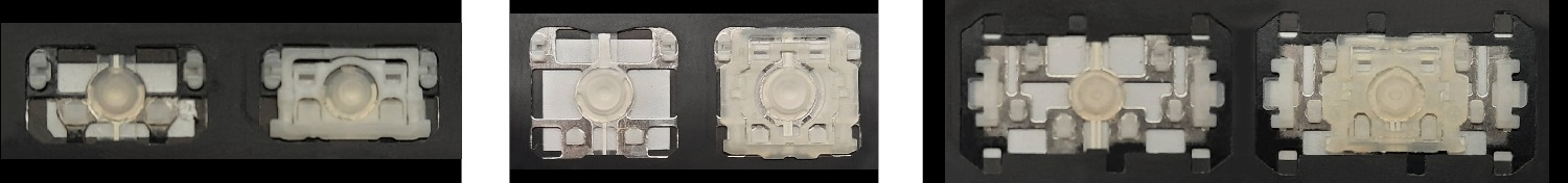*Zdarza się, że w poszczególnych modelach klawiatury stosuje się więcej typów mocowań niż te trzy pokazane na zdjęciach; niektóre klawisze mają też metalowe zawiasy.