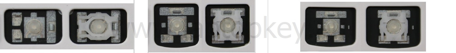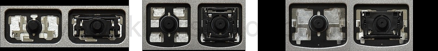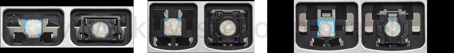 *Zdarza się, że w poszczególnych modelach klawiatury stosuje się więcej typów mocowań niż te trzy pokazane na zdjęciach; niektóre klawisze mają też metalowe zawiasy.