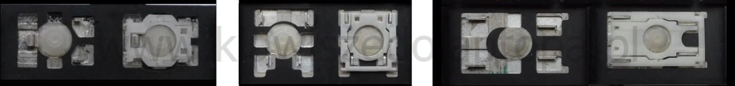 *Zdarza się, że w poszczególnych modelach klawiatury stosuje się więcej typów mocowań niż te trzy pokazane na zdjęciach; niektóre klawisze mają też metalowe zawiasy.