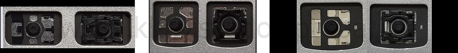 *Zdarza się, że w poszczególnych modelach klawiatury stosuje się więcej typów mocowań niż te trzy pokazane na zdjęciach; niektóre klawisze mają też metalowe zawiasy.