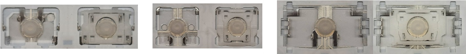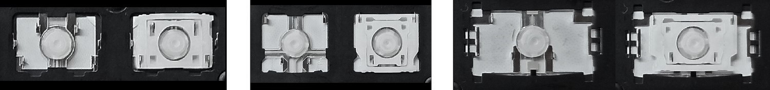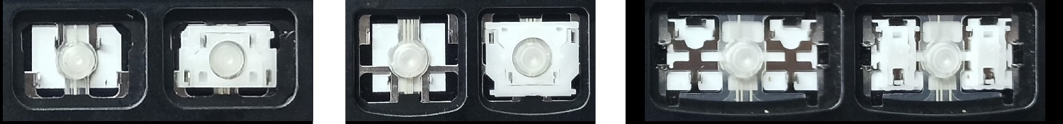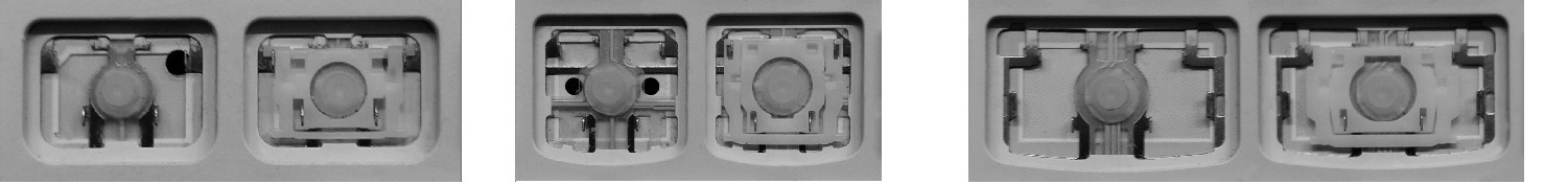 *Zdarza się, że w poszczególnych modelach klawiatury stosuje się więcej typów mocowań niż te trzy pokazane na zdjęciach; niektóre klawisze mają też metalowe zawiasy.