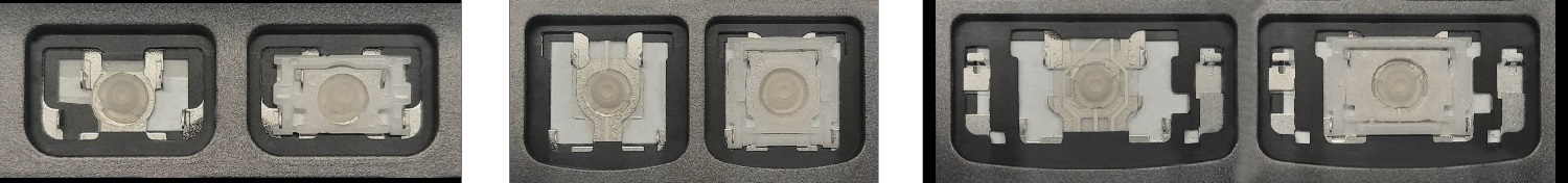 *Zdarza się, że w poszczególnych modelach klawiatury stosuje się więcej typów mocowań niż te trzy pokazane na zdjęciach; niektóre klawisze mają też metalowe zawiasy.