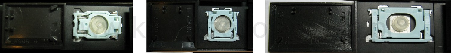 *Zdarza się, że w poszczególnych modelach klawiatury stosuje się więcej typów mocowań niż te trzy pokazane na zdjęciach; niektóre klawisze mają też metalowe zawiasy.