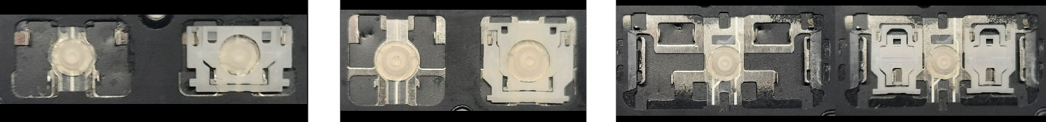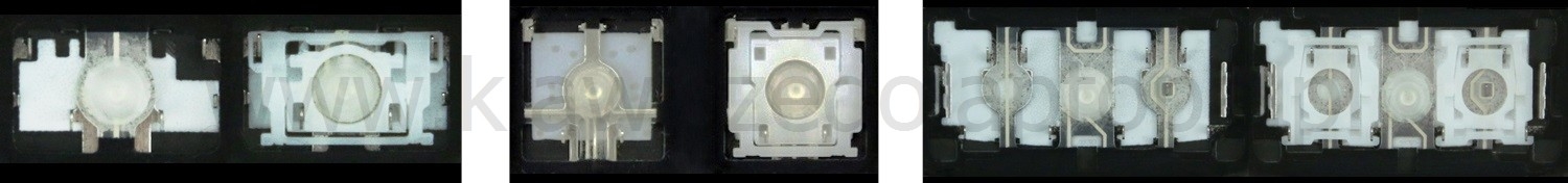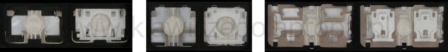 *Zdarza się, że w poszczególnych modelach klawiatury stosuje się więcej typów mocowań niż te trzy pokazane na zdjęciach; niektóre klawisze mają też metalowe zawiasy.