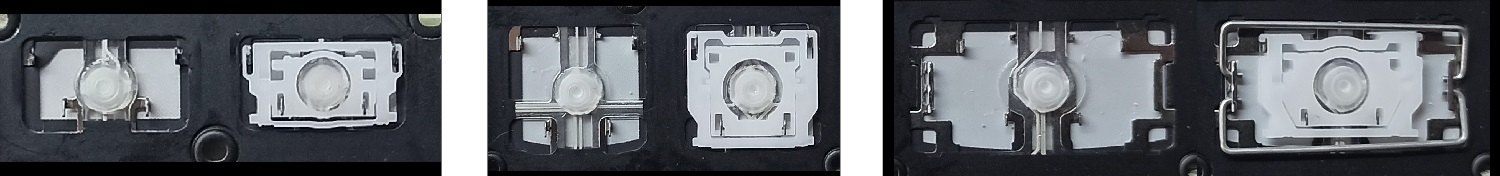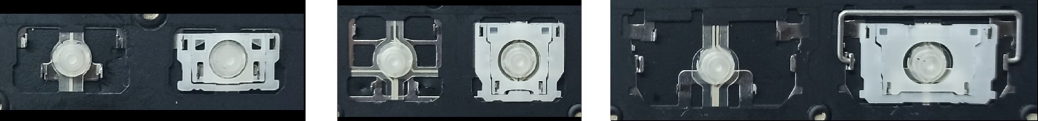 *Zdarza się, że w poszczególnych modelach klawiatury stosuje się więcej typów mocowań niż te trzy pokazane na zdjęciach; niektóre klawisze mają też metalowe zawiasy.