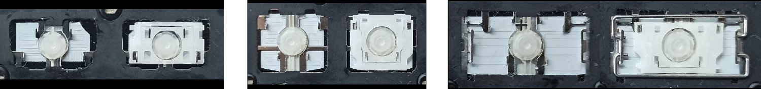 - W większości klawiatur wyglądających identycznie z zewnątrz stosowane były różne typy mocowań pod klawiszami.
