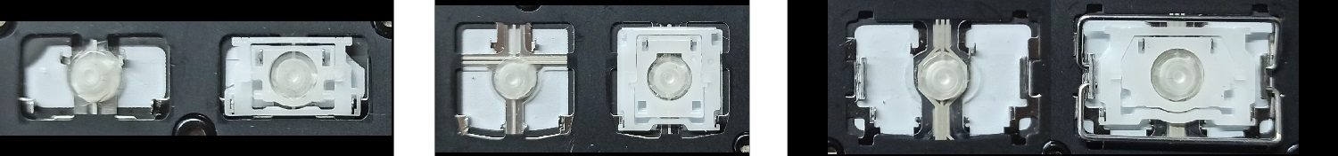 - W większości klawiatur wyglądających identycznie z zewnątrz stosowane były różne typy mocowań pod klawiszami.