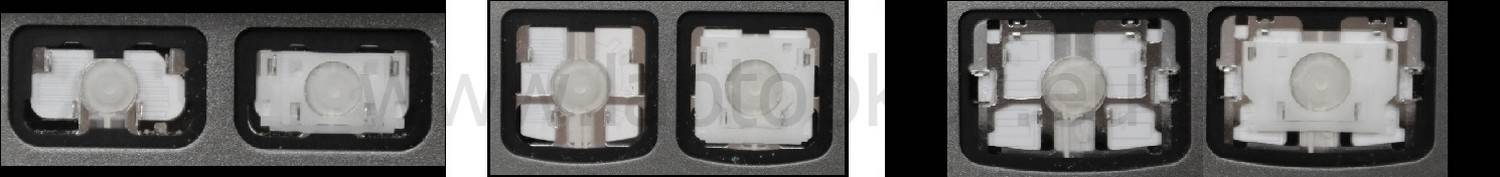 *Zdarza się, że w poszczególnych modelach klawiatury stosuje się więcej typów mocowań niż te trzy pokazane na zdjęciach; niektóre klawisze mają też metalowe zawiasy.