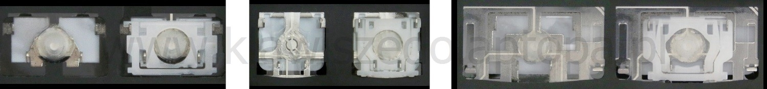 - W większości klawiatur wyglądających identycznie z zewnątrz stosowane były różne typy mocowań pod klawiszami.