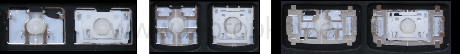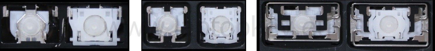*Zdarza się, że w poszczególnych modelach klawiatury stosuje się więcej typów mocowań niż te trzy pokazane na zdjęciach; niektóre klawisze mają też metalowe zawiasy.