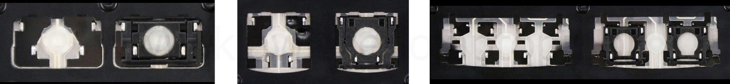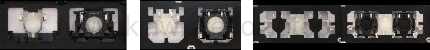 - W większości klawiatur wyglądających identycznie z zewnątrz stosowane były różne typy mocowań pod klawiszami.