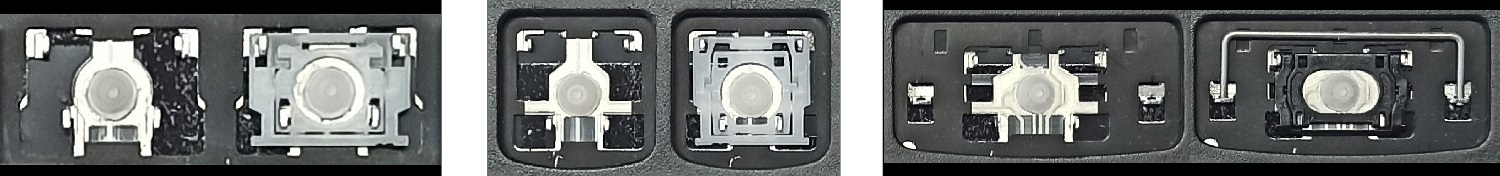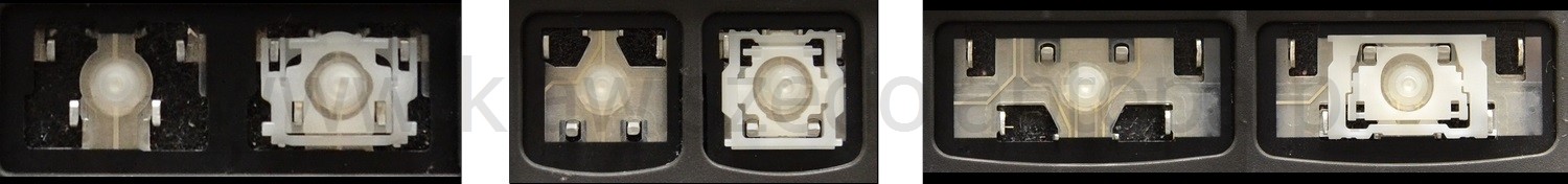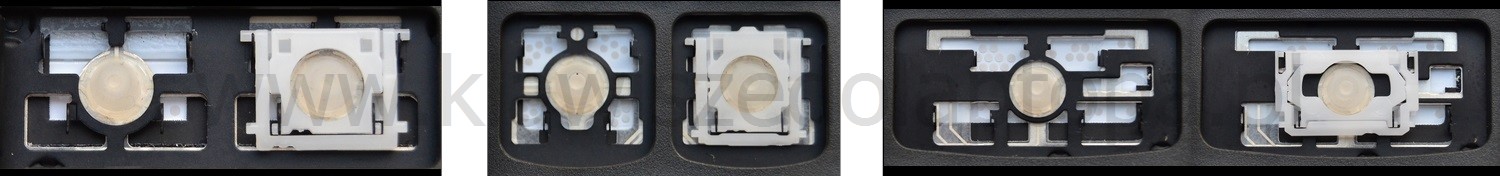 *Zdarza się, że w poszczególnych modelach klawiatury stosuje się więcej typów mocowań niż te trzy pokazane na zdjęciach; niektóre klawisze mają też metalowe zawiasy.