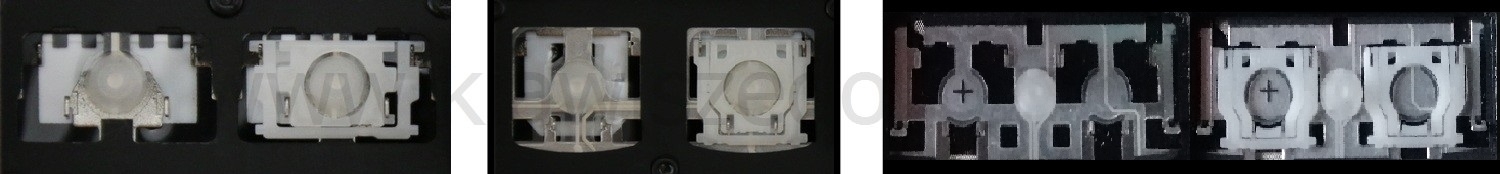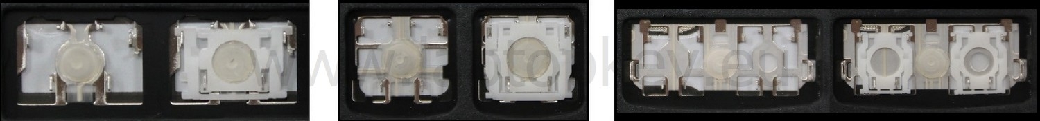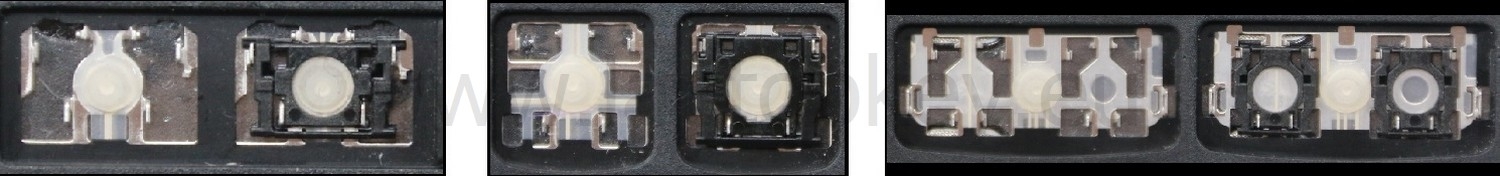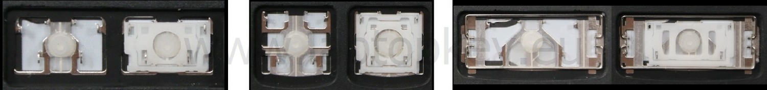 *Zdarza się, że w poszczególnych modelach klawiatury stosuje się więcej typów mocowań niż te trzy pokazane na zdjęciach; niektóre klawisze mają też metalowe zawiasy.
