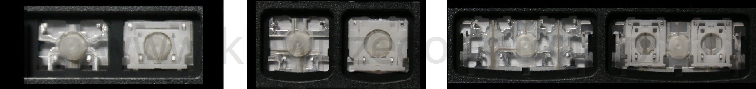 *Zdarza się, że w poszczególnych modelach klawiatury stosuje się więcej typów mocowań niż te trzy pokazane na zdjęciach; niektóre klawisze mają też metalowe zawiasy.