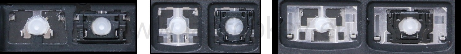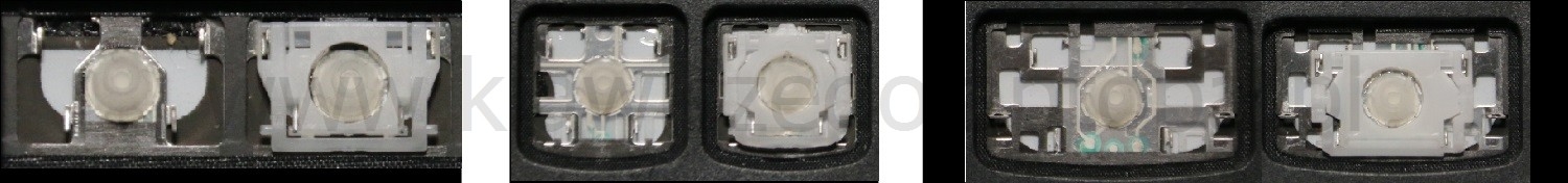 *Zdarza się, że w poszczególnych modelach klawiatury stosuje się więcej typów mocowań niż te trzy pokazane na zdjęciach; niektóre klawisze mają też metalowe zawiasy.