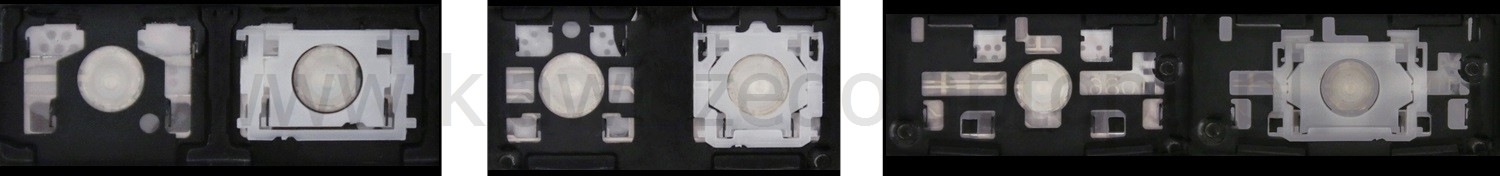 *Zdarza się, że w poszczególnych modelach klawiatury stosuje się więcej typów mocowań niż te trzy pokazane na zdjęciach; niektóre klawisze mają też metalowe zawiasy.