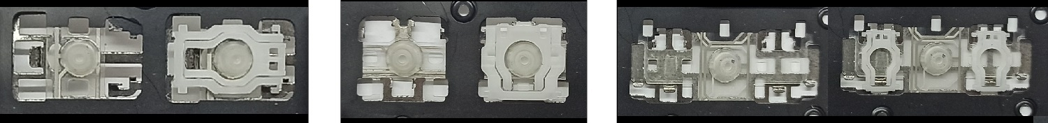 - W większości klawiatur wyglądających identycznie z zewnątrz stosowane były różne typy mocowań pod klawiszami.