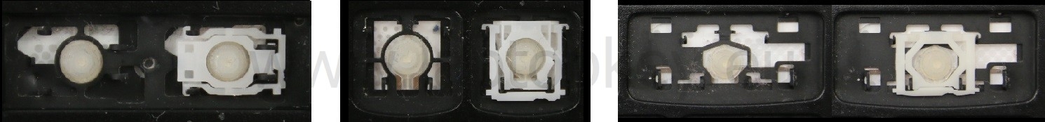 *Zdarza się, że w poszczególnych modelach klawiatury stosuje się więcej typów mocowań niż te trzy pokazane na zdjęciach; niektóre klawisze mają też metalowe zawiasy.