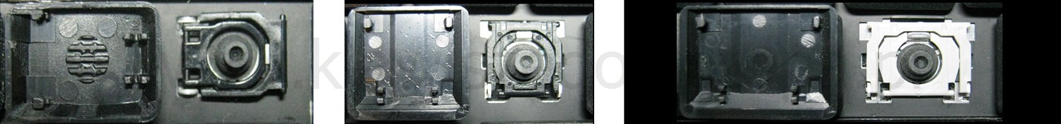 *Zdarza się, że w poszczególnych modelach klawiatury stosuje się więcej typów mocowań niż te trzy pokazane na zdjęciach; niektóre klawisze mają też metalowe zawiasy.