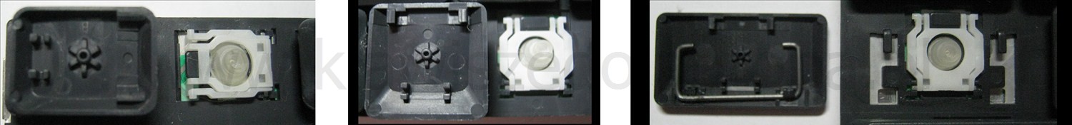 *Zdarza się, że w poszczególnych modelach klawiatury stosuje się więcej typów mocowań niż te trzy pokazane na zdjęciach; niektóre klawisze mają też metalowe zawiasy.