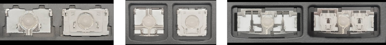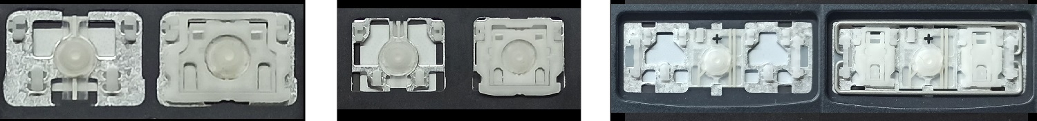 *Zdarza się, że w poszczególnych modelach klawiatury stosuje się więcej typów mocowań niż te trzy pokazane na zdjęciach; niektóre klawisze mają też metalowe zawiasy.