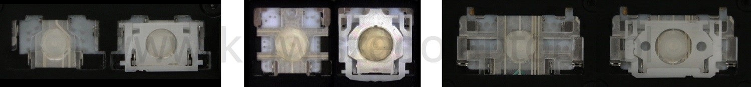 - W większości klawiatur wyglądających identycznie z zewnątrz stosowane były różne typy mocowań pod klawiszami.