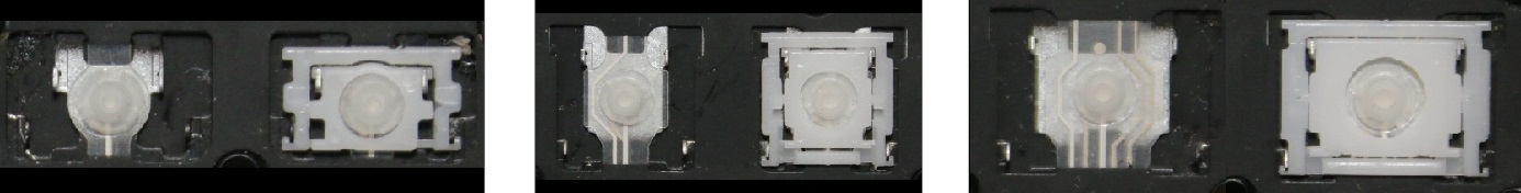 *Zdarza się, że w poszczególnych modelach klawiatury stosuje się więcej typów mocowań niż te trzy pokazane na zdjęciach; niektóre klawisze mają też metalowe zawiasy.