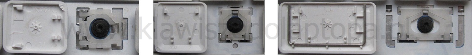 *Zdarza się, że w poszczególnych modelach klawiatury stosuje się więcej typów mocowań niż te trzy pokazane na zdjęciach; niektóre klawisze mają też metalowe zawiasy.