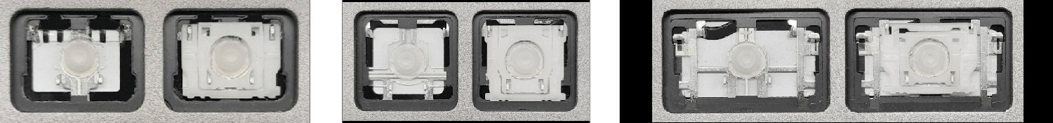 *Zdarza się, że w poszczególnych modelach klawiatury stosuje się więcej typów mocowań niż te trzy pokazane na zdjęciach; niektóre klawisze mają też metalowe zawiasy.
