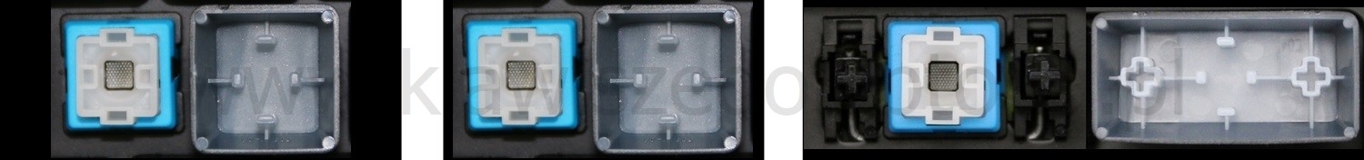 - W większości klawiatur wyglądających identycznie z zewnątrz stosowane były różne typy mocowań pod klawiszami.