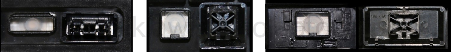 *Zdarza się, że w poszczególnych modelach klawiatury stosuje się więcej typów mocowań niż te trzy pokazane na zdjęciach; niektóre klawisze mają też metalowe zawiasy.